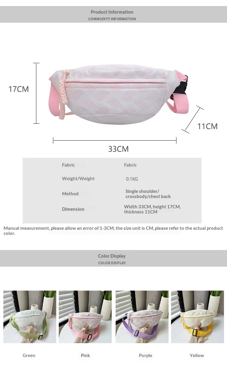 Color: pink, green, yellow, purple